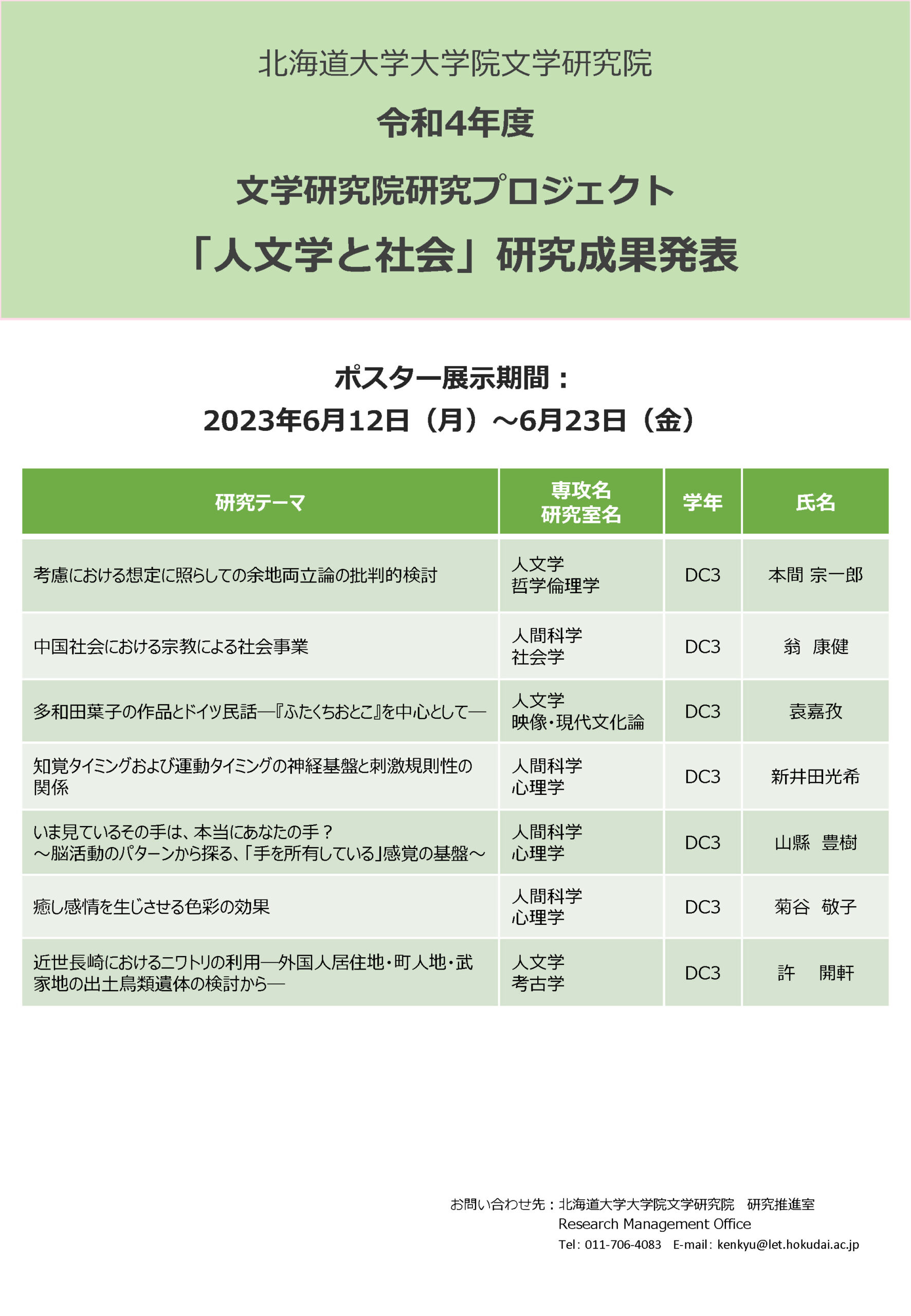 - お問い合わせ: 文学研究院 研究推進室
