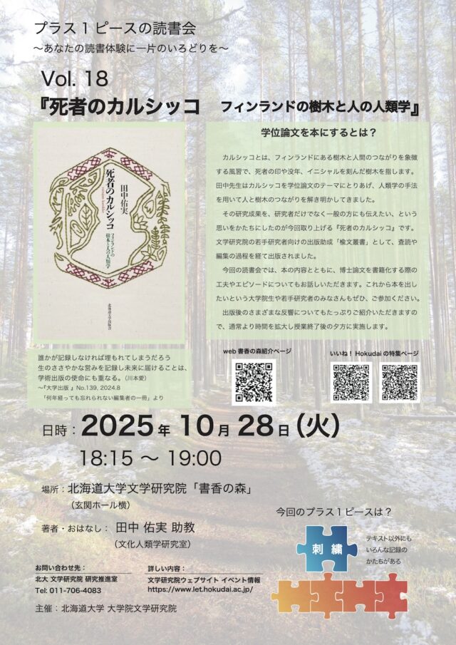 - 場所: 北海道大学文学研究院「書香の森」(玄関ホール横)